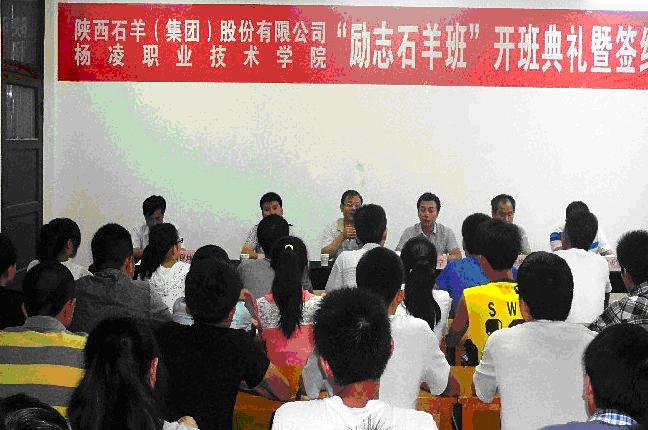 會上,楊凌職業(yè)技術(shù)學(xué)院動物工程學(xué)院王書記對第二屆“勵志石羊班”的開班表示熱烈祝賀,對石羊集團(tuán)給予學(xué)校教學(xué)改革的支持表示感謝,對校企合作所取得的成績做了充分肯定,對加入訂單班的學(xué)生提出了幾點要求。周博寧總經(jīng)理簡要介紹了石羊集團(tuán)情況,對加入石羊班的同學(xué)表示歡迎,勉勵同學(xué)們要珍惜機(jī)會,努力學(xué)習(xí),早日成才。