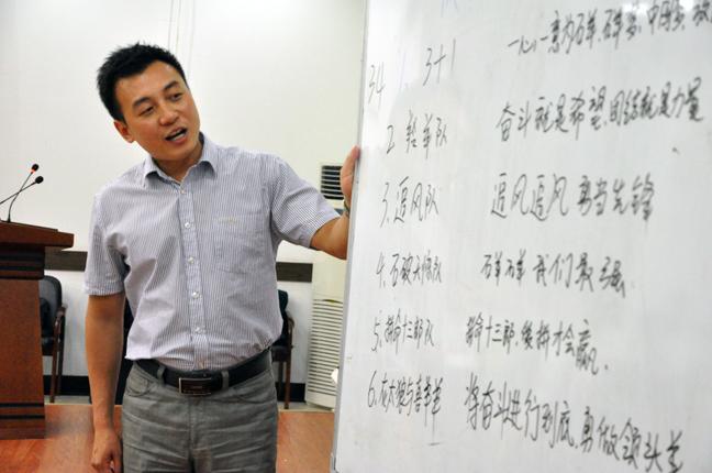 集團人力資源部經(jīng)理周博寧做了培訓前的熱身