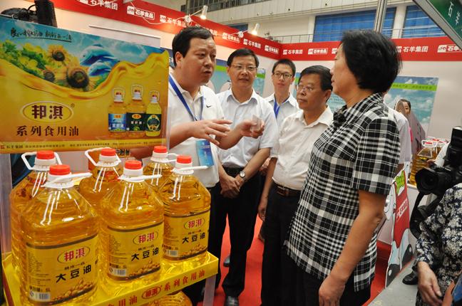 省政協(xié)副主席馮月菊、陜西省商務(wù)廳廳長姚超英等領(lǐng)導(dǎo)特意參觀了石羊集團(tuán)的展位。集團(tuán)總裁常青山詳細(xì)給各位領(lǐng)導(dǎo)介紹了石羊集團(tuán)全產(chǎn)業(yè)鏈的運(yùn)營模式與未來企業(yè)的遠(yuǎn)景規(guī)劃。最后,政府領(lǐng)導(dǎo)們對(duì)石羊集團(tuán)的產(chǎn)品與社會(huì)貢獻(xiàn)給予了充分的肯定,同時(shí)就企業(yè)的發(fā)展方向作了重要的指示,并寄予了深切的希望。常青山總裁表示:在省、市政府的正確領(lǐng)導(dǎo)和支持下,集團(tuán)全體同仁將繼續(xù)努力為老百姓提供可靠、安全、綠色、優(yōu)質(zhì)農(nóng)產(chǎn)品,做好農(nóng)業(yè)產(chǎn)業(yè)化國家重點(diǎn)龍頭企業(yè)的榜樣。