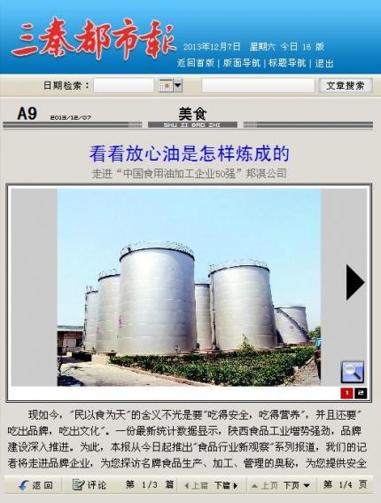 現(xiàn)如今,"民以食為天"的含義不光是要"吃得安全,吃得營養(yǎng)",并且還要"吃出品牌,吃出文化"。一份最新統(tǒng)計數(shù)據(jù)顯示,陜西食品工業(yè)增勢強勁,品牌建設(shè)深入推進。為此,本報從今日起推出"食品行業(yè)新觀察"系列報道,我們的記者將走進品牌企業(yè),為您探訪名牌食品生產(chǎn)、加工、管理的奧秘,為您提供安全消費、放心消費、健康消費、時尚消費指南。今日首期推出來自西安邦淇制油科技有限公司和多美滋嬰幼兒食品有限公司的報道。